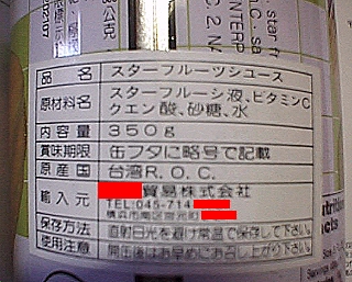 缶底試飲会。私は1本の缶を手に取った。楊桃汁STAR FRUIT JUICEと書かれている。誰かからのお土産であった(と思う)。[注釈:神奈川県海老名市アイワールドにて購入しました。購入者やまもと]