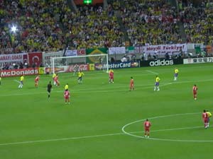 横浜は、とても大きな競技場で、「芝は最高、視界は最低」などといわれていたから見え方は気にしていたものの、二階席ながらよく見えた。もちろん肉眼では選手の顔の確認どころか、背番号がやっと見えるぐらいの距離だったから迫力には欠けたかもしれないが、全体の動きがよく見えたし、テレビでは映らない、ボールのそばにいない時の各選手の動きがはっきりわかって、楽しめた。