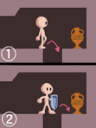 まずはどんどん上へ。途中の1つ目の赤いドア(蔵書庫への入り口)は今は無視。2つ目の赤いドアを開けるとでっかいカギ穴の空いた部屋に出る。ここはワープルームで、カギ穴の前に立って方向キー上を押すことでワープが可能。出た先は城入り口のワープルームになってて、そこから出るとハートアップがあったりして嬉しい限り〜♪スイッチで壁を引っ込ませて先へ行くと見覚えのあるあそこに出ます。これで城入り口と崖側外壁を自由に行ったり来たりできるようになりましたね〜ドンドンパラリラ。ちなみにワープルームは表城で5つ、逆さ城で5つ、合計10部屋あります。 では崖側外壁に戻って更に上に行ってみましょう。左へ左へと登って行くと、なんだかモーターみたいなのがあるです。このレバーをばしばし叩くとちょっとエヴァっぽくエレベーターが起動したことが告げられます(大汗)。モーターの右のつぼにはまたハートアップがあるんですがこれは少しの間おあずけ。更にさらに登って行くと3つ目の赤いドア(至:時計塔)があるけどこれもおあずけで、その上が第7セーブポイントですんで休みたい方はどうぞ。