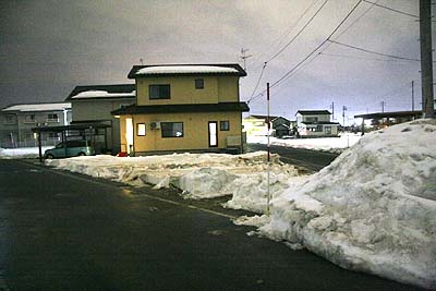 除雪された部分に足を踏み入れたら、泥に埋まりそうになって1歩でやめた...(^^; それでも土地の中に建物の形状がなんとなく見えた。図面で見るよりも建物が大きく見えた。