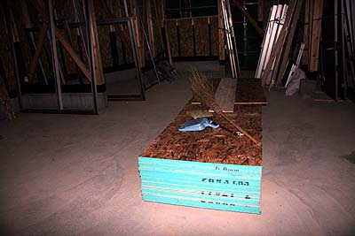 材料加工の作業場になっているハズのガレージ、職人さんが撤収する前に徹底的に掃除しているらしい。何時見ても加工屑やゴミが無い状態で、整然としている。パネルの上に置かれたホウキとチリトリは毎日活躍しているのだろう。