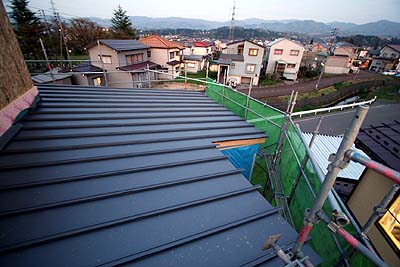 いつの間にか屋根のニスクボードの上に屋根材が貼られていた。