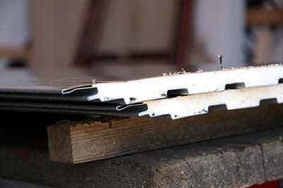 複雑な形状に合わせて鉄板を貼っている。この部分を何と呼ぶのか知らないが、ウチの形状だとめんどくさそう(笑)。