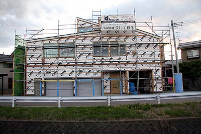 大きな変化は無いように見えるが、見えない側面から外壁を貼り始めている。