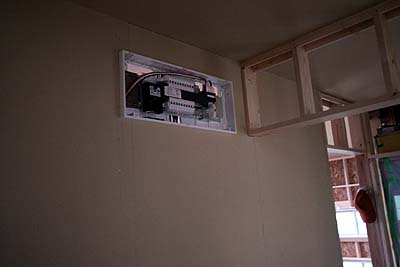 配電盤が設置され、耐火ボードで壁が貼られた。