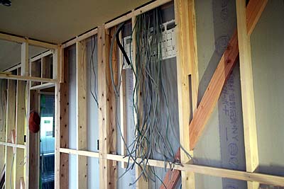 1週間後には配線も接続され、壁も出来上がり、引き戸の枠もハマっていた。