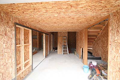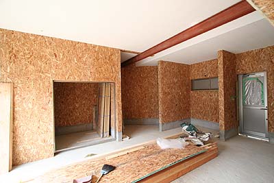 木工事がほぼ終わった2階部分、内装工事が一気に加速。