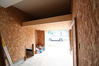 センターのガレージ。天井高さ2000mmでその上にロフトが設置された。ここは毎日出入りするガレージなので、圧迫感が無い程度の高さで天井を2000mmに設定。万が一車高が高い車を買ってしまっても大丈夫。2000mmを超える車は絶対に買わないつもりで設定(^^;;