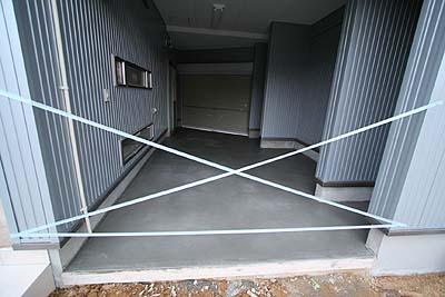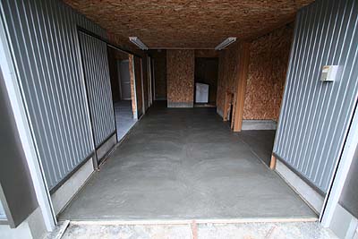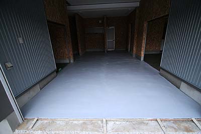 ロドスタガレージ。ここは耐油性のカラクリート仕上げ。オイルが染み込まない。ナニ色にしようか迷ったのだが、ほぼ普通のコンクリート風味なライトグレーにした。 ここは水捌け勾配は出来るだけ弱めに設定。