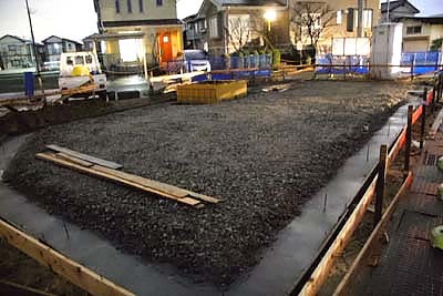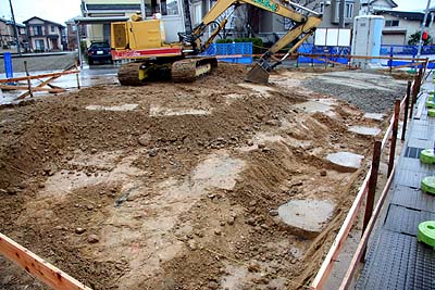 地盤改良工事完了から3日ほど養生して基礎工事が始まった。