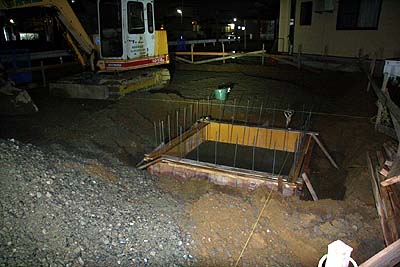 翌日にはそのフロ状のエレベータピットに基礎の立ち上がりが。