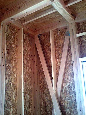木造軸組在来工法で、各部に建築金物による補強を併用している。柱と筋交いを使う在来工法ながら、外側のすべての面に構造用合板を打つ。パネル無しでも強度を確保できる木造軸組在来工法に構造用合板を貼る事で、2X4や2X6などのパネル工法と同等の 「面」 によるモノコック構造を併用している。