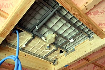 ...。そんなフレームで大丈夫なんでしょか?(^^;お湯の重さ+人間だけでも200Kgを遥かに超えるわけで、ユニットバス全体の重さも加わってそのフレームで大丈夫なの? その位置から万が一フロが落下すると...