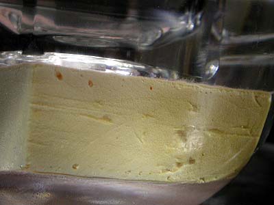 水没状態のアップ。気泡が出るようなら吸水している可能性が有ると思って観察してみたが、気泡はまったく発生しない。化粧紙が本体から微妙に浮いてきたような気もするが、化粧紙がふやけて接着面が剥げた?