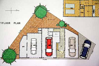 6発目である。今回は同時に3つのプランが提案された。1階ガレージ部分は同じで、2階部分の居住空間の違いで3つの案だ。4〜5発目と続いた系統とはまったく違う新たな案。