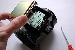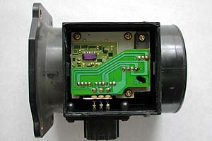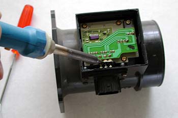 3本の端子を半田付けする。半田付けが終わったら金属板をハメ込み、フタをして溝を液体パッキンでシーリングすれば修理は完了だ。これでこのエアフロは復活するのである。すべてのエアフロが同じトラブルだとは限らないが、私がバラした2個のエアフロはまったく同じトラブルだった。中古品を買っても同じトラブルに見舞われる確率が高いわけで、修理してしまった方がむしろ信頼性は高くなるのではないか? 修理したエアフロは現在元気に走り続けている。交換する前に半田にクラックが入っていないかどうかを確認して、同様にクラックが入っているようなら修理してみては如何だろうか?