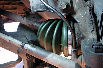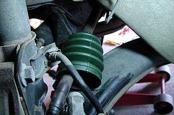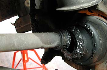 インプレッサやレガシー(初代レガシーを除く)のブーツは滅多に切れない。一番切れやすい谷間部分にOリングが挟んであり、急激な曲げ伸ばしの力が掛からないように工夫されている。なので、通常なら一番切れやすいハズの部分ではなく、細くなってる首の部分が切れた。Fireインプレッサバンの場合は11年12万キロで切れたわけだが、インプレッサや2代目以降のレガシーでブーツが切れた話は滅多に聞かない。インプレッサでもWRX系は樹脂製で蛇腹がもっと細かいタイプを使ってるようで、これも切れた話は聞かない。滅多に切れないとは言え、切れてしまったのなら交換しないわけにはいかない。ドライブシャフトを外してインナーブーツを外してアウターブーツを交換するのが正しい方法なんだろうが、面倒なので嫌だ。ロアボールジョイントを外すのも嫌だし、ストラットとナックルを切り離すとアライメントが狂うのも面倒だ。