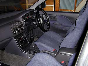 当初はC'zとかCSとかってグレードの安いヤツを買おうと思ったんだけど、探してみるとHXってヤツが多い。これはボンネットの穴を除けばWRXとウリ二つの外観で、内装もWRXと同じスポーティーな椅子が付いてる。カッコイイじゃん。スバルのディーラに並んでた中古車で良いのが有った。けっこ安いしコレに決めた。整備なんかしなくても良いから安くしろって値切ったけど駄目でした(^^;。保証が付く関係上、ちゃんと整備しなきゃ駄目なんだって。しかも1000Km点検まで付くんだとか。中古車でも1000Km点検が付くとは知らなかった(^^;。