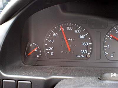 定点撮影。305Km走って燃料計は半分以上。05年以降とほぼ同等に見えるが...? ナゼ305Kmかというと、初期の頃のアタックで燃料メータ半分の時を狙って撮影したら305Kmだったから。そして期待の結果は?