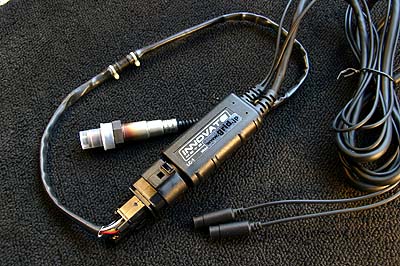 そこで今回私は、A/Fメータに内蔵されているアナログ出力を利用した。↑ INNOVATEのA/Fセンサアンプ LC-1 を使用。これは純正のO2センサを取り外してA/Fセンサに交換するわけだが、A/Fアンプは純正O2センサ信号をエミュレートするアナログ出力を持っている。