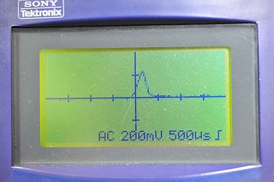 まず、バッテリを接続して充電を開始すると、3秒間ほど鋭いパルスを流す。パルスの高さは100mmVくらいか? コレでバッテリの状態を判断しているようで、ココで充電不可なバッテリはエラー表示となる。(エラーで充電できないバッテリは別機能のメンテナンス機能で復活を試みる事が可能)