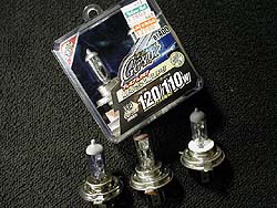 最近売ってるバルブは高効率タイプが主流で、尚且つ色温度が高くて白っぽいと言うのが流行りらしい。しかし白っぽいと言ってもブルーの色を付けて色温度を変換しているだけで、「白い」ってのと「明るい」ってのは別問題だと思うのだが...? 本当に明るくて白く見えるのならOKだと思うが、同じフィラメントが発光していながら青いフィルタを通してるのなら暗くなるハズ。クリアなバルブの方が明るいと思うんだよね。高効率タイプで60/55Wでありながら「120/110W並みの明るさ」と書いてあったり、「130/120W並みの白さ」と書いてあったり...? いろんな色の製品が有ってわけわからんのだが、良く見ると白さ追求型と明るさ追求型が有って、明るさ追求のモノはやはりクリアバルブになってるようだ。