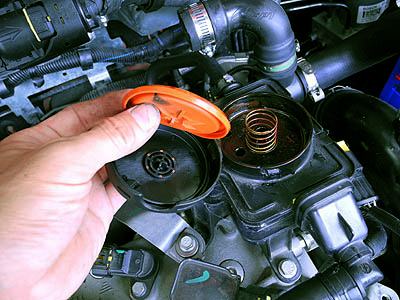上部の怪しい丸いフタを外してみた。むむむ? パッキンとバネ???