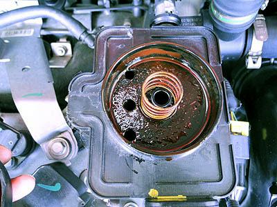 本当にこうなってるんだろうか? これではクランクケースが真空付近まで減圧してしまうハズ。ナニか秘密が有るか、または私が吸ったり吹いたり塞いだりして判断した事が間違っているのか?問題のオイルセパレータは本来は非分解式なのだが、無理矢理分解してみた。