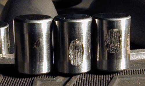 1のテストで使ったモノ。オイル無しでの焼付きを3回繰り返した跡である。