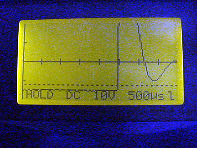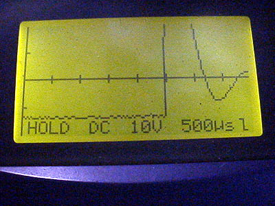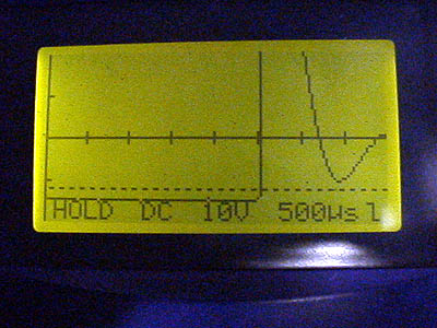 投入直前。横軸の目盛りは500μsec。噴射時間は2.5msecよりちょっと短いくらいか?