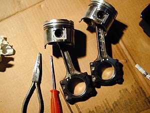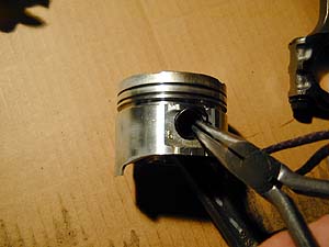 ピストンピンクリップを外せば、フルフローのピストンピンは簡単に抜ける。