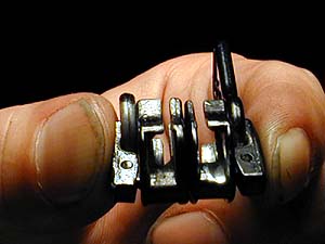爪を起こせば取れるようだ。外したファスナの金具を良く見ると、溝部分がかなり激しく摩耗している。これでは隙間が広くなっているわけで、ファスナを左右から圧着する力が弱くなる。だから金具を動かしてもファスナが開いたままとなっていると考えられる。