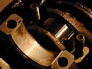 2番のコンロッドメタルにはハデなキズが入っていた。摩耗とか焼付きって言うよりは、異物キズである。 他の所もキズが多い。 このキズに付いてはのちほど触れる。
