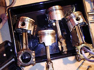 4個のピストン。 ピストンそのものはキズも少ないし、再利用しようと思えば可能だろう...あら? ちょっと待て、おひおひ、なんかおかしいんじゃ?