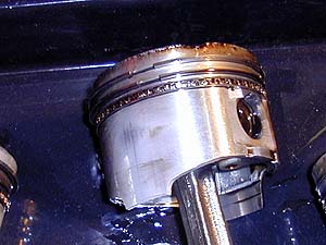 もしもし?(^^;;;お〜い、このピストンリングの組方はなんだ? 合口を側圧方向に向けて、それもトップとセカンドが同じ向きに組んであるじゃんか〜っ! しかも、これだけじゃくて、他のピストンもメッチャクチャ。 オイルリングもトップとセカンドが同じ向きに組んであったり、側圧方向やボス方向を向いてたりとか、何も考えずに適当に組んだとしか思えん。 松田エンジン組立工おそるべし! ロドスタが売れまくってた時期に大量に雇った季節労働者の仕業だろうか?(笑) こんな組方じゃぁ、オイルが減るのも当たり前って感じだね〜。