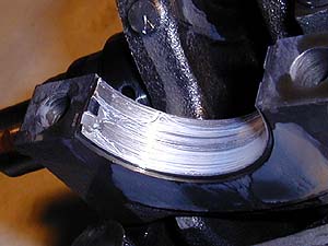 この新車当時の切り粉がメタルにキズを付けているモノと思われる。通常の使用状態でメタルにキズを付けるほどの異物が外部からオイルに混入する事などほとんど考えられない。 ロドスタのエンジンを多数O/Hした経験を持つ某氏に聞いてみたところ、ロドスタはどれも同じようにメタルにキズが付いているんだそうだ。摩耗とか焼付きではなく、明らかに異物によるキズなのだ。メタルに埋没して残っている異物(メタルは異物が混入した場合に異物を埋没させてクランクを守るように設計されている)も多数確認できる。 う〜ん、松田エンジンおそるべし!