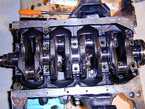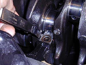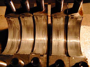 ピストンが外れたら、今度はクランクジャーナルベアリングを外す。 もちろんこれもクリアランスをすべて測定しながらバラすのだ。