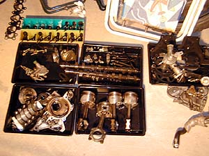 外した部品はこんな風に整理した。 すべて100円ショップで買ったケース。バルブを16分割にして整理してあるのはカセットテープケースを利用したモノ。