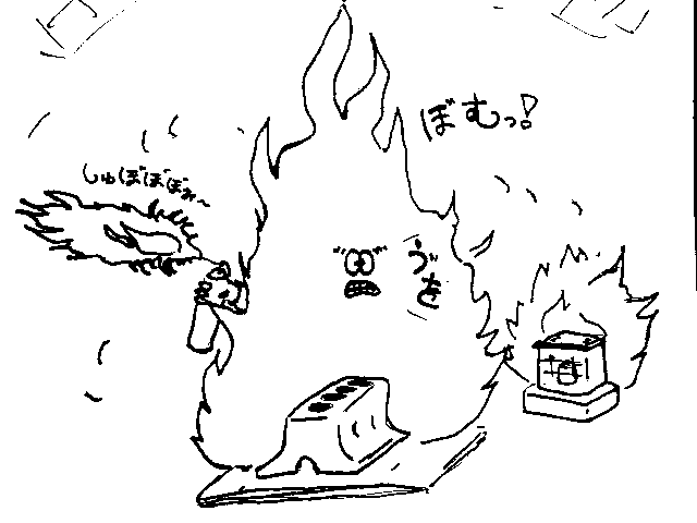 げげげげのげ、まだなんか燃えてる!