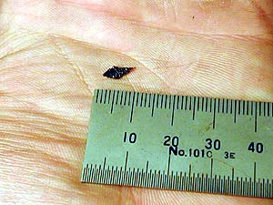 これはマイナスドライバで突っついただけでポロっと取れたバリである。8mmはあるだろうか? エンジン回転中の振動や熱歪みでコレが剥げて脱落しても何の不思議も無い。