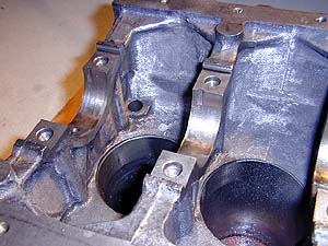 ブロックをボーリング加工に出す前に鋳砂落し加工をやる。これは鋳砂が予期せず脱落や剥離してオイルに回ってトラブルとなる可能性を減らす事と、ブロック内側を滑らかにする事でオイルの落ちを早くしてオイル容量を有効に使うという意味がある。