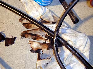 これが燃えたウエスとフレキチューブと配線。フレキチューブも配線も使用は可能。問題無い。