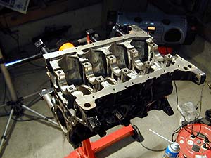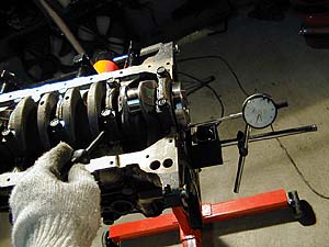 エンドプレーはきっちり基準値の真ん中くらい。スラストメタル交換後も変わらない。スラストメタルはやっぱし減ってなかったみたい。あんなモンそう減るもんではないか?(笑)う〜ん、クランクメタルのオイルクリアランスがちょっと広い以外には特に問題はないな。