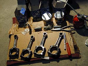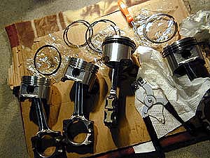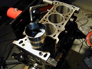 磨き上げて重量も合わせたコンロッドとピストンを組み立てる。右端に写ってるのは実にカッコイイUSAGのオイラー。0.5リットルは入りそうな余裕の大容量とフレキシブルなノズルが便利。ステキなデザインも泣かせる。組み付け油にはいつものオイル+GRPを5%である。初期の焼付き防止や馴染みを良くするのにGRPは大変効果的であると判断しての採用。