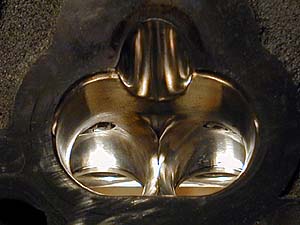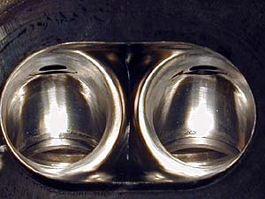 吸気と排気のポート。気合いの鏡面研磨。ノーマルと比較するとかなり巨大。拡大してあるし形状もかなり違う。基本的な形状は3万キロ前の時点で作ったモノ。今回の作業はカーボン落しと更なる研磨である。