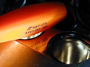 燃焼室表面ももちろん鏡面研磨。いつものようにドライバの文字が写る。