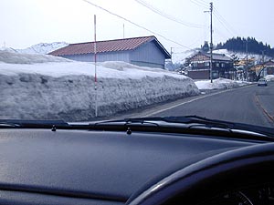 三国峠は2メートルは有ろうかと言う雪の壁。路面は乾いているから問題無い。