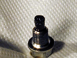 磁石付きドレンボルトにはコンモリと鉄粉が付いていた。これはいつものオイル交換時の10倍って感じの量。ボーリングしてクロスハッチを入れたシリンダと新品ピストンリングの摩耗粉だろう。