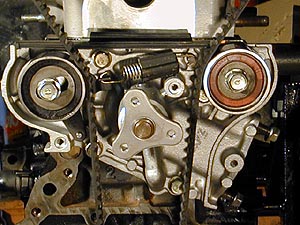 とりあえずタイミングベルトを付ける。古いベルト(と言っても3万キロしか使ってない)を付けてバルタイを108-108度程度にセット。