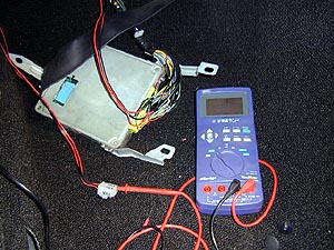 このようにコネクタに計測器を手軽に接続出来る。ECU本体は引っ張り出さなくてもOK。引き出してあるのは、ISCV、インジェクタ、吸気温度、エアフロ、の4本である。左の写真はインジェクタ波形である。冷間増量補正中のアイドル時で、約3msecほどだろうか。横軸のスケールを細かくすればもっと詳細に把握出来る。この計測器は重宝している。ちなみにナノセカンドの単位でも測れる。自動車関連に波形ならほぼすべてを測定出来る。点火二次波形だけは見れないが、それ以外はOK。オーディオの音声波形も見れた。CDのデジタル信号は多分無理。クロックが足りない。確か、秋葉原の計測器ランドで3万円くらいだったと記憶。話がそれた...確かロールバーの話だったハズなのに(^^;